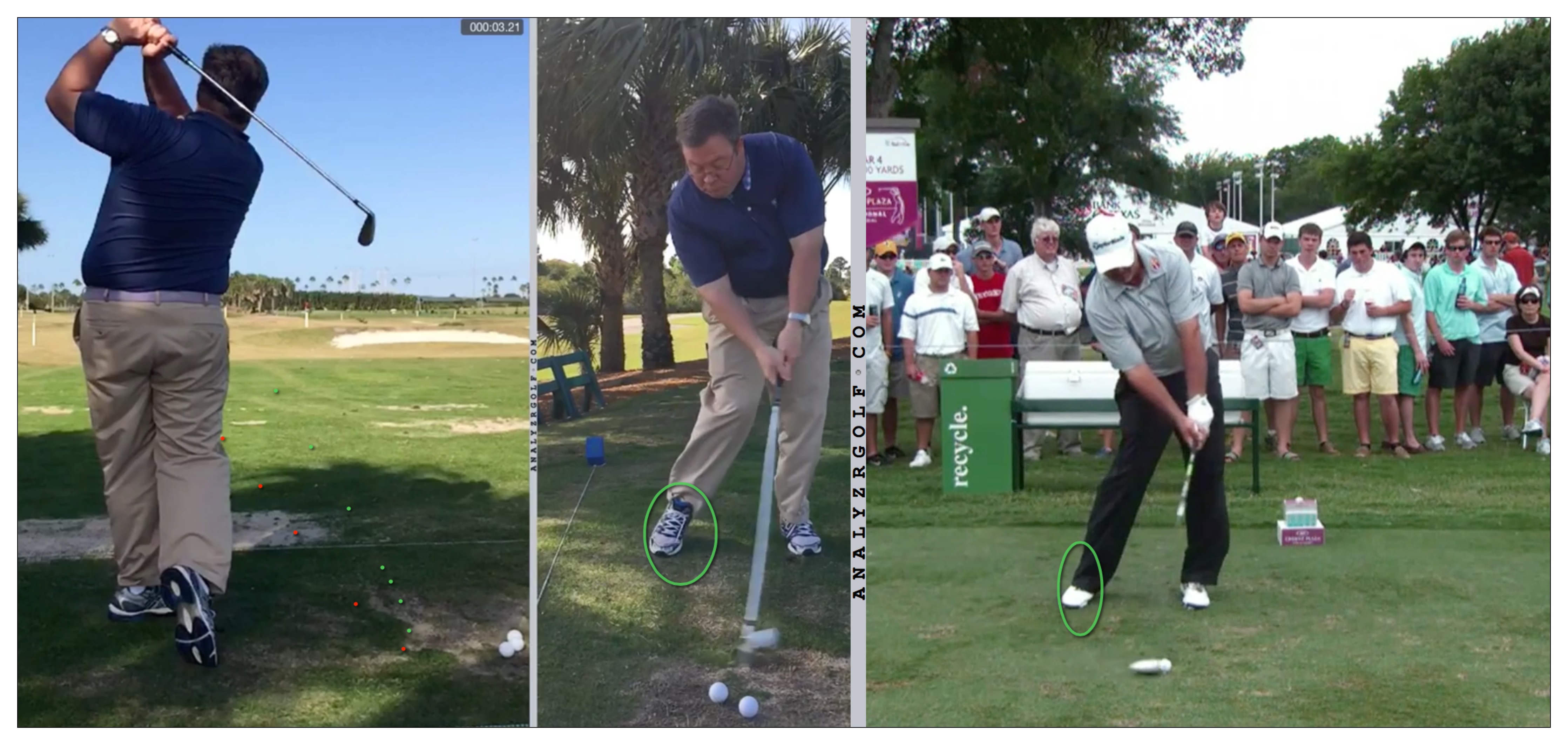 Why? Needs to shift weight to left side just a tad sooner at impact.