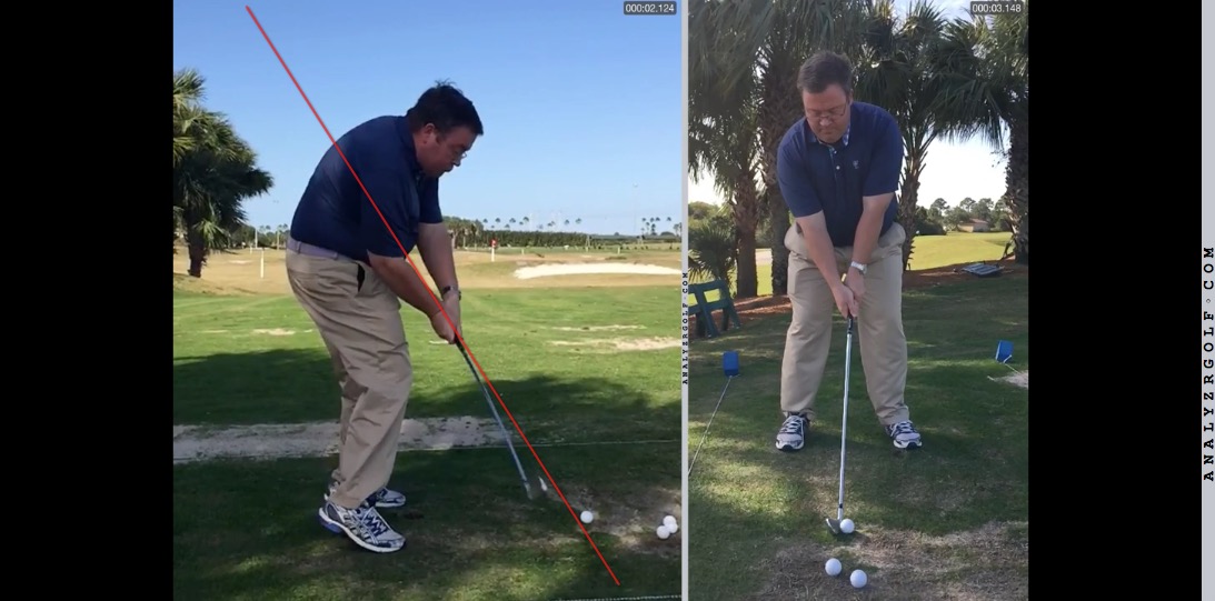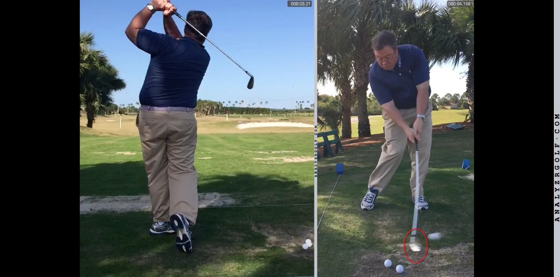 2. Why? Needs to shift weight to left side just a tad sooner at impact.