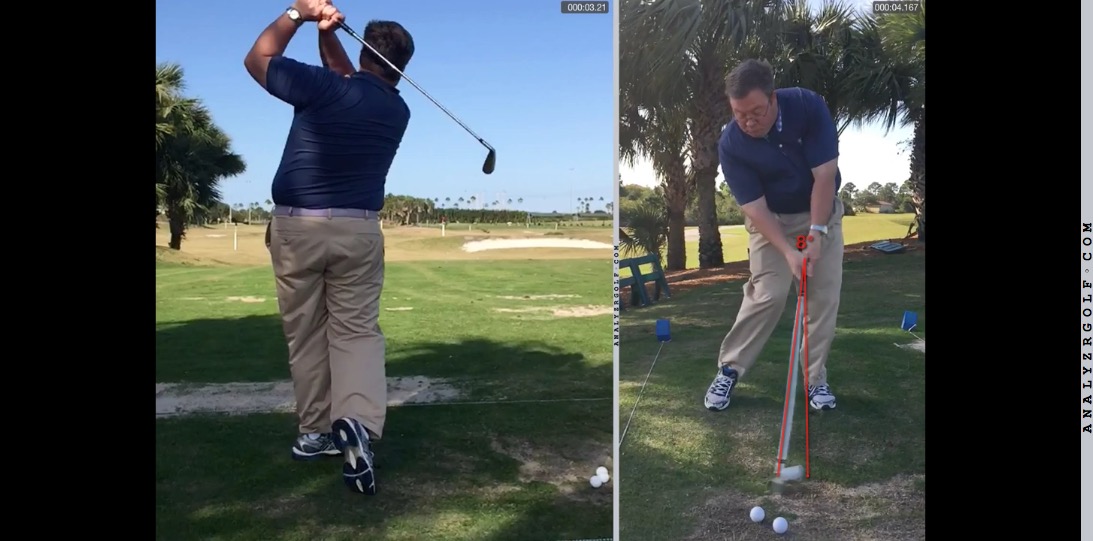 I envy his swing plane, exactly what I'm shooting towards - steeper and less deep going back and flatter coming forward. The only thing I notice is what Bill already mentioned ... He's up on his right toes early. Need to keep that leg straighter and bank the right foot. That's all I got.