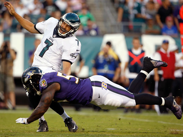 Well, Bradford survived this cheap shot from Suggs, right on his repaired knee. Stay healthy, dude!
