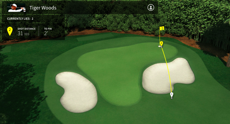Nice chip on 4 for Tiger.  From 31yds to 2ft. Sank the par putt.