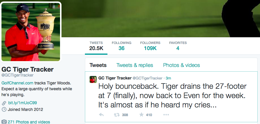 If Tiger could hole a few putts he'd be on page one of the board.