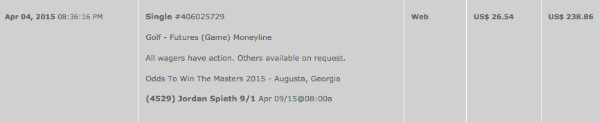 Didn't enter the competition but did put a few bucks on Spieth at 9/1 (granted my budget isn't as big as some to put down the big bucks, plus I'm not a huge gambler). So I will be very happy if Jordan closes this out. Have another ticket with DJ.