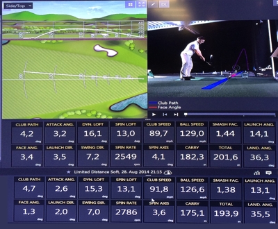 The TrackMan Pro has been adjusted to the balls, the FlightScope Trajectory Optimizer prompts different numbers: 198y carry and 230y total for the upper shot, 188y and 220 for the one at the bottom. The distances in yards from TrackMan Pro are 199y/220y and 191y/211y - carry is spot on, roll depends on the surface.