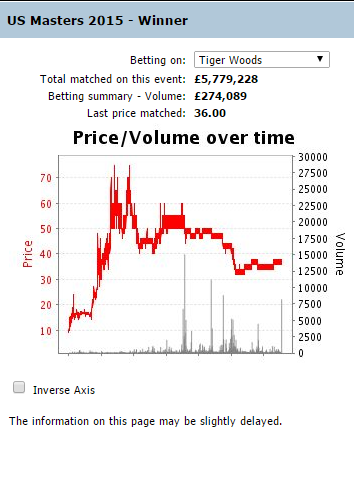 I am trying to find a way to upload a pic of his volume. But, the key details are so far .. $8m has so far been bet on the Masters, of which $400k is on Tiger, at odds from, as high as 70/1, down to a low of 30/1.