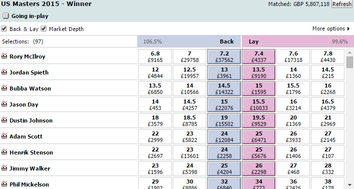 Being on-line, they are v flexible, and betting will open and be fairly liquid, till the last putt drops. I am no spokesperson for Betfair, but, will post the betting volume of the winner, and the price / volume graph, after the event, and we will no doubt see some spikes.