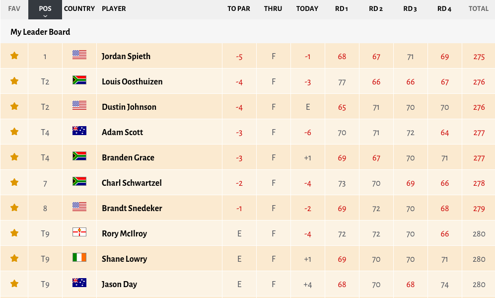 Oosthuizen beat Spieth by 8 strokes over the final 3 days. Beat DJ by 12.