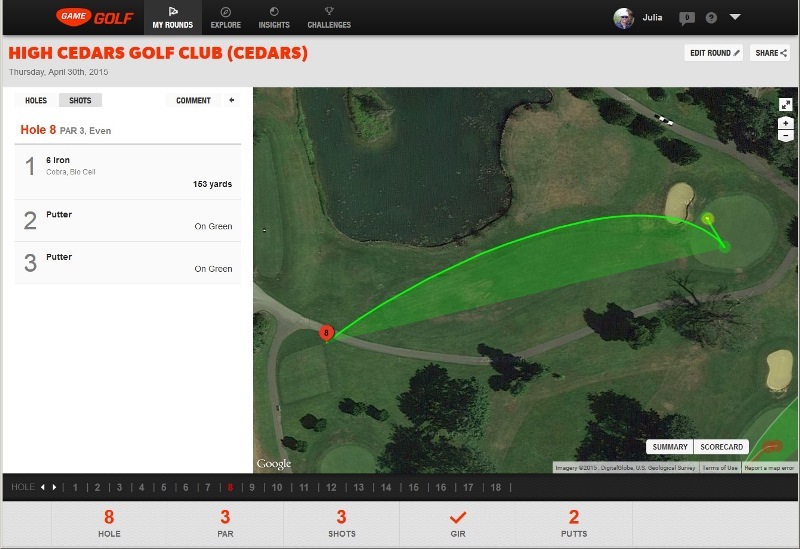 * Don't go by Game Golf for shot average distances. GPS distances can be off by 10 meters at each location. They are approximate. They don't add up to my Bushnell. I nailed a 166 yd six iron on a par 3 a couple yds past pin high 8 feet right of the flag. GG said I hit it 155 yds. I checked online for GPS and distances and this is normal. Thing is if I had a series of these that said 155 yd avg and took that as gospel, and shot a distance of 155 with my Bushnell and selected 6 iron I'd could overshoot my target.