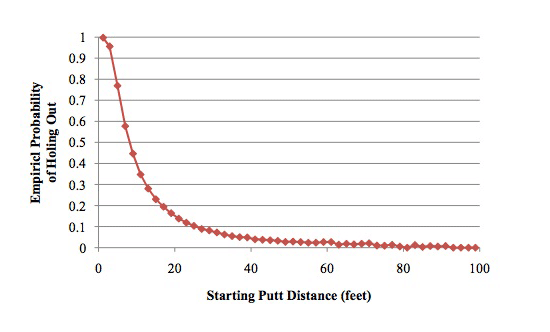 I built a putting baseline curve out of the data in Every Shot counts. It's not perfect, but well in the ballpark, I think. Similar to the one below. The number I stated isn't the best putters' performance, but the long-term tour average at (not inside) that distance. Make % climbs up steeply from ~ 75% each foot closer to the hole.