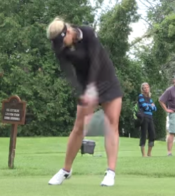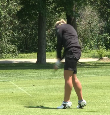 Is this player's (Brooke Henderson) lead wrist extended a little at impact?