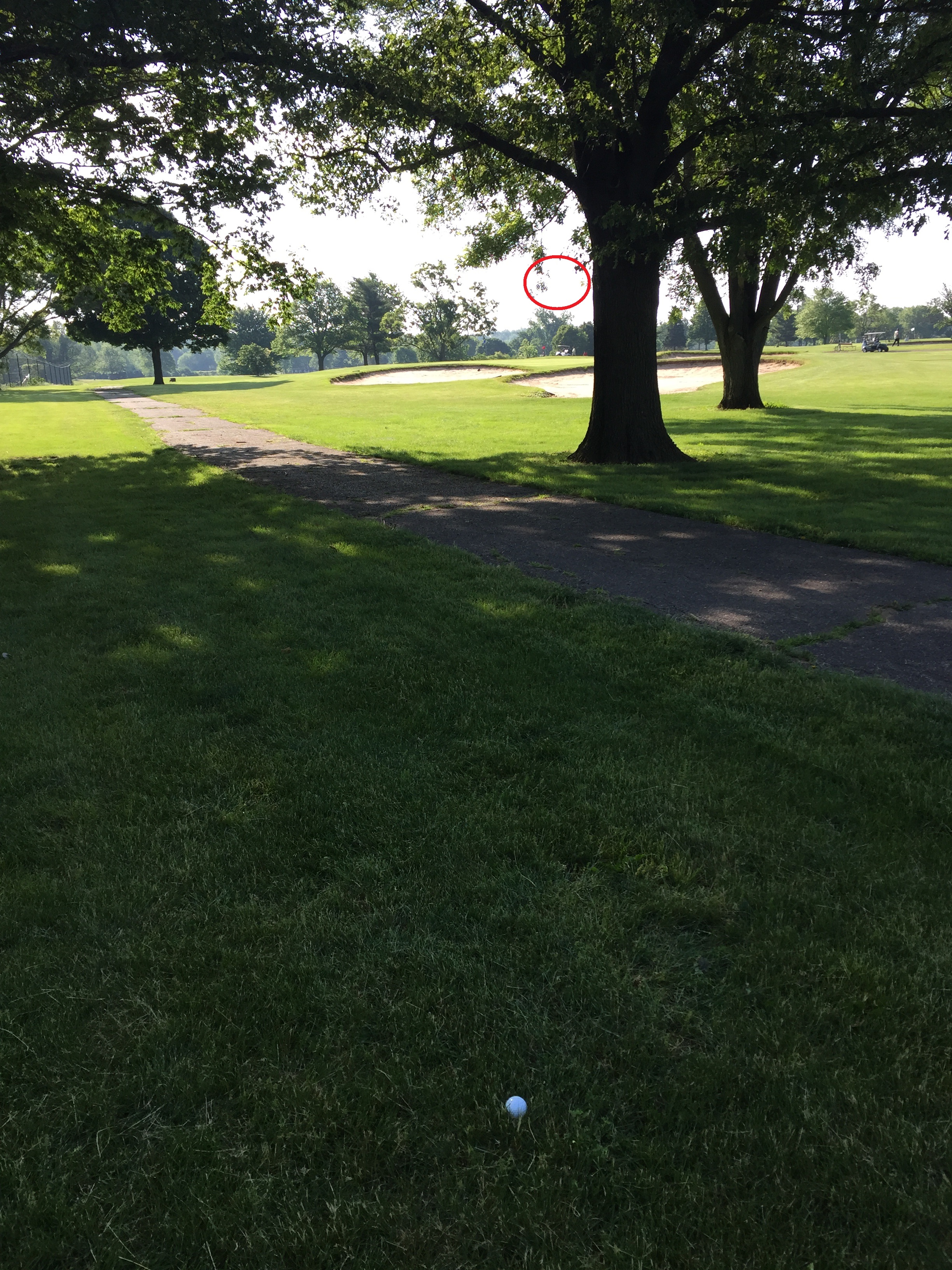 I've thought about creating this thread for a while and finally had the presence of mind to take a pic the other day. Here's the idea. If you are faced with a "death shot" with limited options and a high probability of failure, take a quick pic or video (please don't hold up play to do this) and post it here with a description of the play and results. Please use some sort of pic from game golf, but preferably one of the actual shot you faced to reduce the speculation aspect. The idea is that we all can learn with real world examples of recovery shots.