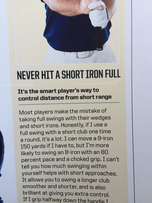 Let's not say it totally like that… I play 3/4 7-irons and the backswing feels like it stops at about the same place as my other shots. The technique works for any club - you just rarely have the chance for it to work below the wedges. But yeah, I'll "flight" my 9I sometimes. My 8I less often. My 7I far less often. Rarely (see below) my 6I or lower.
