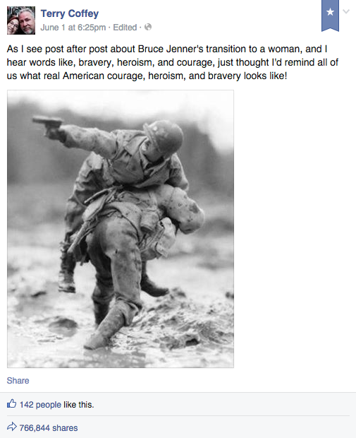 Here are interesting stories about two viral posts and where they came from after Jenner got the Ashe award.  The 'Galloway runner up" rumor came from a tweet by WEEI Boston's Gerry Callaghan, no stranger to controversy and the other is about the photo used in a post about "real" courage.  Turns out Callaghan was "just joking" and the other photo is not of real soldiers.
