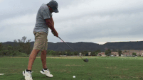 Shanked driver hits leg, ouch! [video]