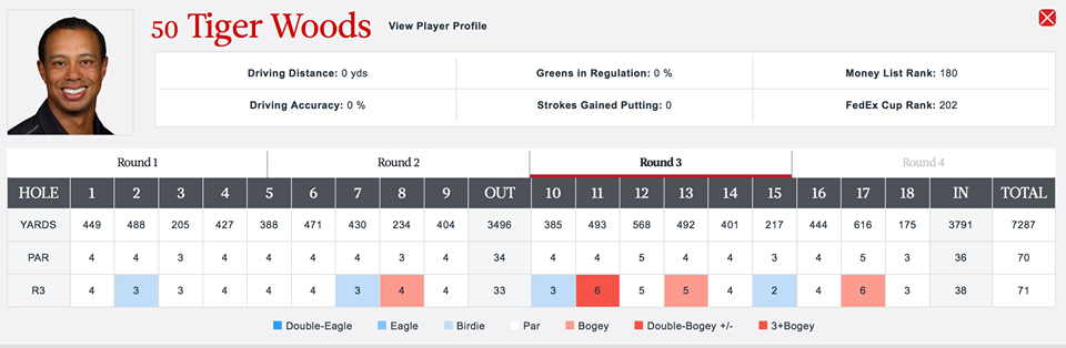 Still time tomorrow though. I mean, if Jason freaking Bohn can shoot 61 out there, certainly Tiger could do the same...