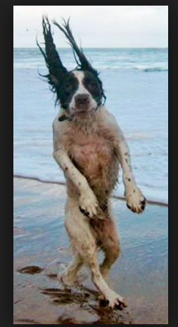 Dog and his hair blown out to sea  at St Andrews