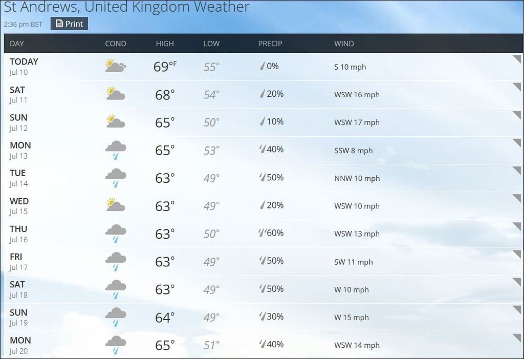 Weather forecast looks a little better for Thur/Fri, less chance of rain - I do hope that if there is bad weather it is for an entire day, as it seems rather luck of the draw to have the field separated by weather as much as by play.