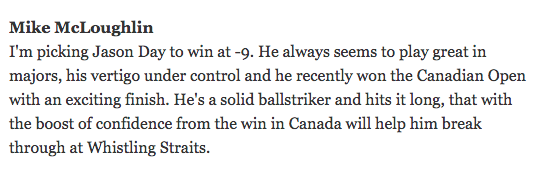SO CLASSY [quote name="teeitup22" url="/t/83371/2015-pga-championship-at-whistling-straits-discussion-thread/750#post_1185693"]And the amazing thing is being classy is more important than their skill level. Jason Day is also classy. Tiger... well I don't know.  [/quote] Alright Never pass up a shot to take a shot at Tiger, I guess.