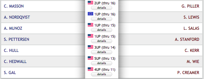 Nordqvist just closed out Lewis. That's 13.5 for the Euros and they only need 0.5 to win (tie goes to them, of course).