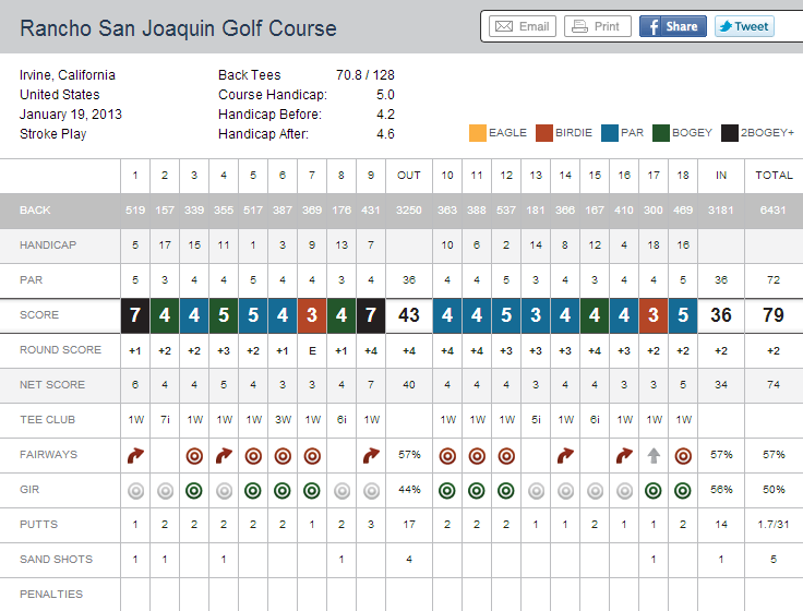 70.7/127 6550..... 75 with 5 birdies and 3 doubles. 4 over through 3, and 1 under for the remaining 15. Good grief.