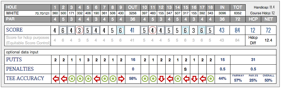 6,615 yds. 71.1/121. 78. 1 birdie and a double. Putted poorly.