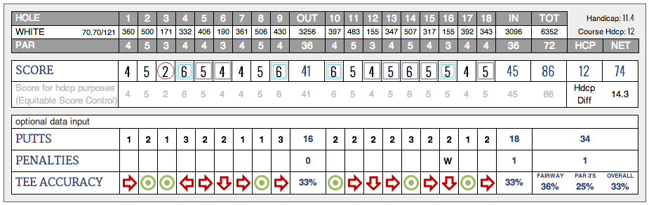 I had 3 penalties and no birdies. This is an 80 that I was pleased with because it could have been a lot worse!!