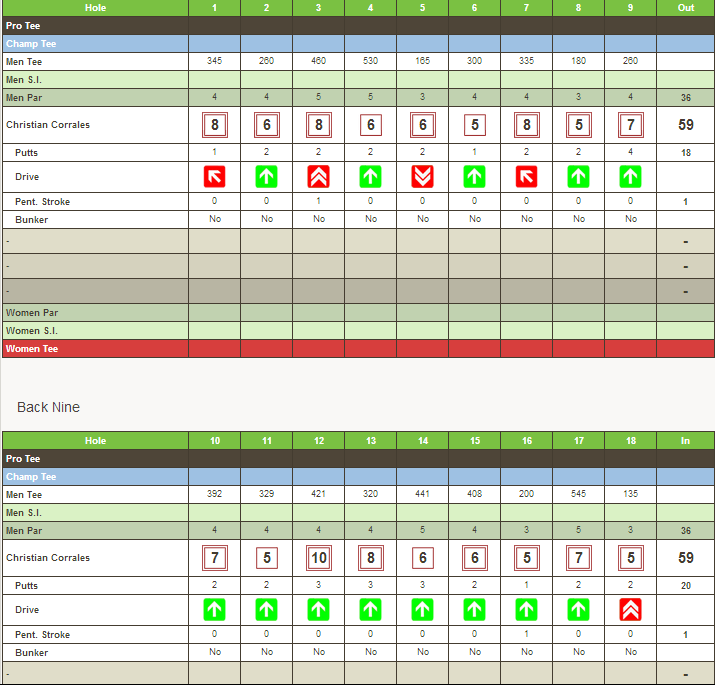 Decided to just do what had been working for me on the back nine and got 2 pars, 3 bogeys, 3 double bogeys, and a 1 triple bogey for a 12 over par.