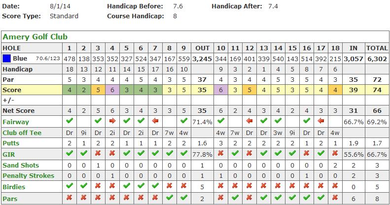 First round in 7 weeks today. Wasn't expecting much but hit some nice shots today and my short game was better than expected. Putting was pretty poor though. Didn't get up and down from a lot of good opportunities and 3 putted the few GIRs i did hit.