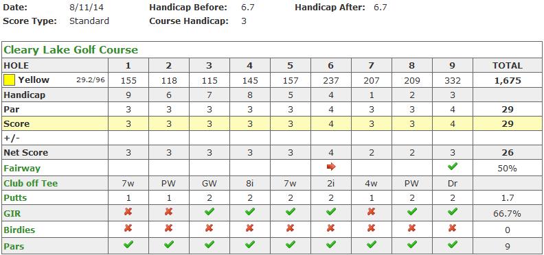 +5 41 One birdie Two doubles Four pars Two bogies 8 nGIR 3 three putts 1 ball in hazard Just wasted alot of opportunities