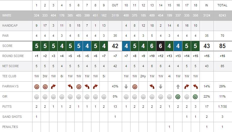 17 over in my first competition round as a member at my new course. Pretty pleased with the round, ball striking was much better than earlier in the week but short game left me today and i made a lot of silly double bogeys from nGIRs :doh: