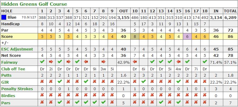Back 9 score: 42........so I carded a pretty good 79 considering my terrible play tee to green.