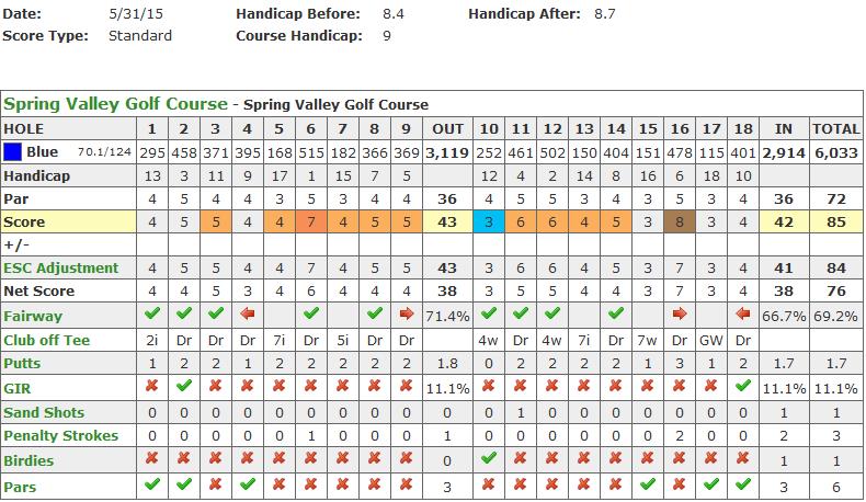 Putts:  18 putts... basically 2 putted every green but had 5 birdie putts of 10 to 15 feet.