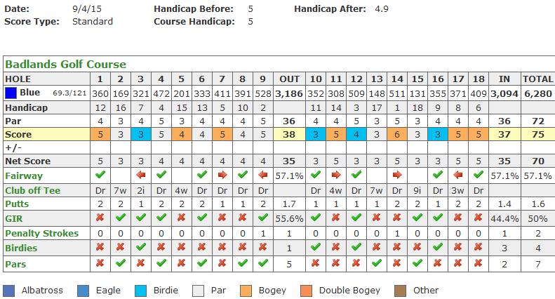 Terrible double on 9, but 2 birdies and 2 bogeys on back.  Back to back birdies on the par 5's, 14 & 15. :beer: