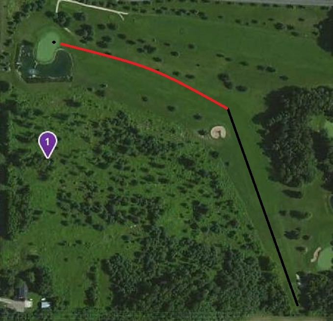 Just because, here's the Par 4 at 300 yards (down wind, down hill, not much shaping of that shot at all, just on line for once)  ((it was a fun weekend - game has been crap, and the last 3/4 rounds I'm seeing new life finally)