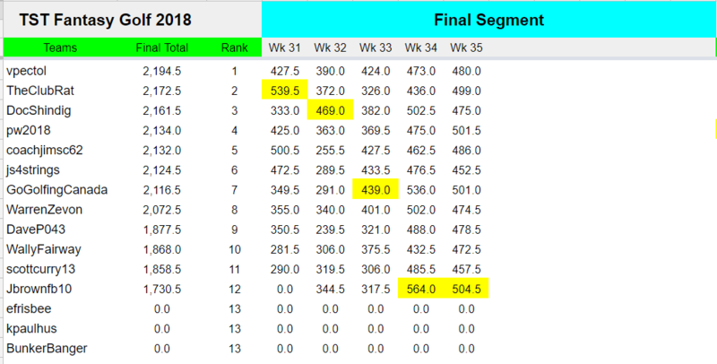 TST Fantasy Golf 2017-18