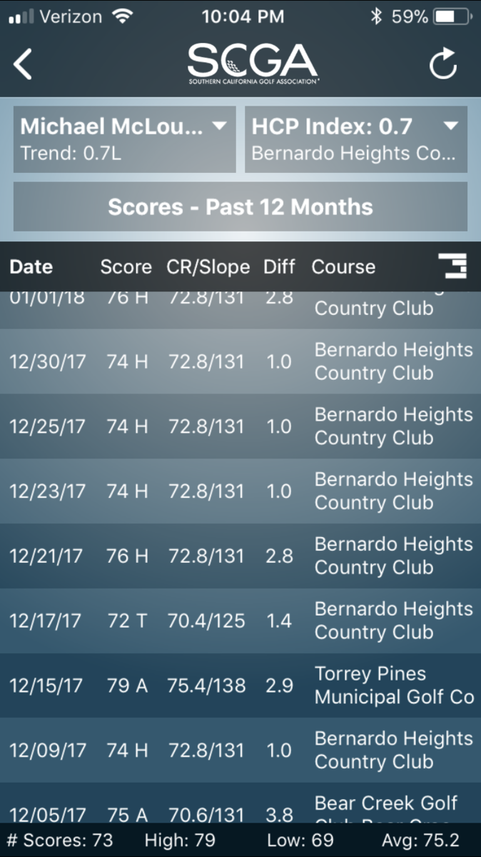 I started GHIN this past August, so since then I had 36 rounds. My guess would be somewhere between 50-60 rounds for the whole year- I played a lot of rounds before August and some “hit-a-few-extra” rounds, too. High:100 Low: 70 Avg: 84.8.